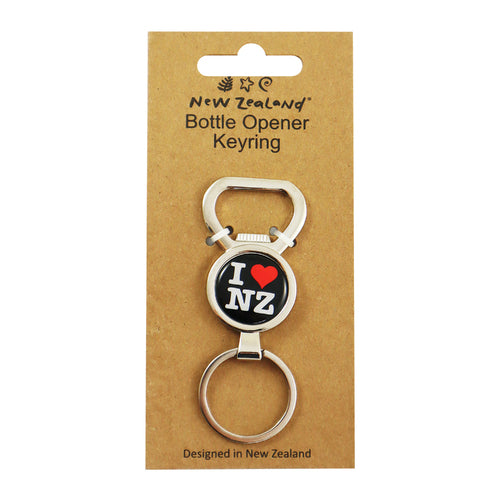 A bottle opener keychain with an I Love NZ design. Compact and practical, it's the perfect accessory for cracking open your favourite beverages wherever you go!
