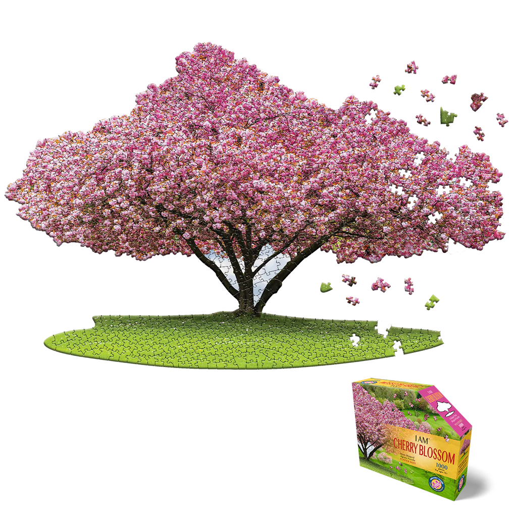Pretty in Pink! Unique-shaped 1000-piece jigsaw puzzle for ages 12 and up. Each puzzle comes with an educational Madd Capp Fun Facts booklet. On one side is a fold-out puzzle image to hang as a poster or use as a reference. The flipside is chock-full of cool information! Did you know, for instance, that Japan's national flower, the"sakura" (cherry blossom), is a symbol of renewal and hope? Iconic blooms in pinks and whites blanket the land of the rising sun – all brilliant, but all too brief.