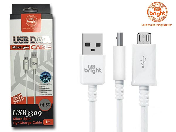 (1M) BK BRIGHT™ Sync Cable for Micro 5 pin Device